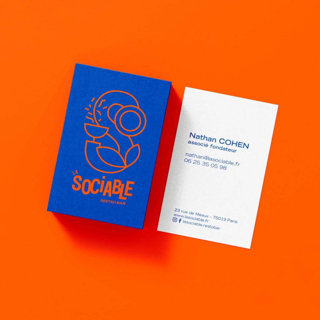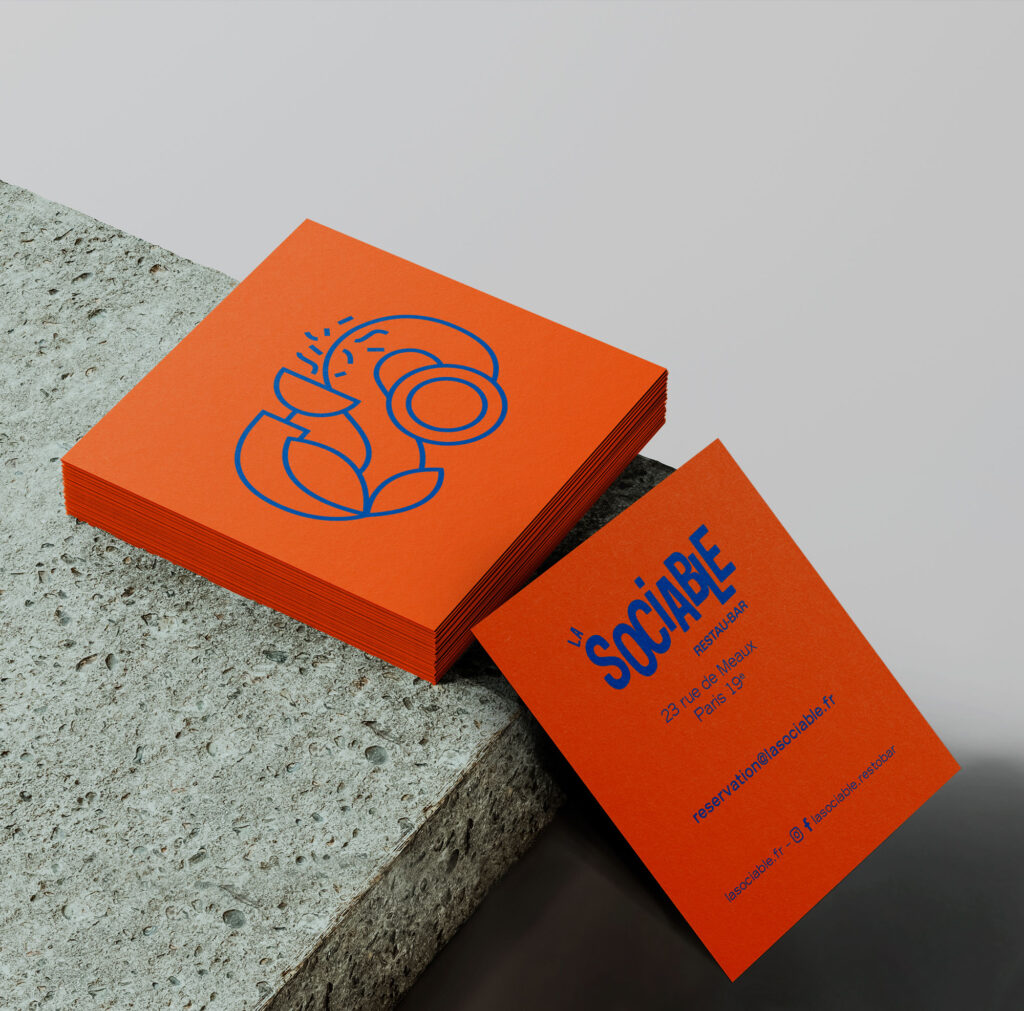 Conception d’une identité graphique pour le restau bar La Sociable. Ce nouveau lieu de vie grandeur nature renoue avec les valeurs véhiculées par la cuisine : le partage, les bons produits, les rencontres… accessibles à tous. L’identité reprend ces valeurs avec une typographie dynamique et engagée, une charte de couleur chatoyante pour le lieu hybride. Le picto a été créé pour évoquer le pluriel du lieu, la rencontre des activités.